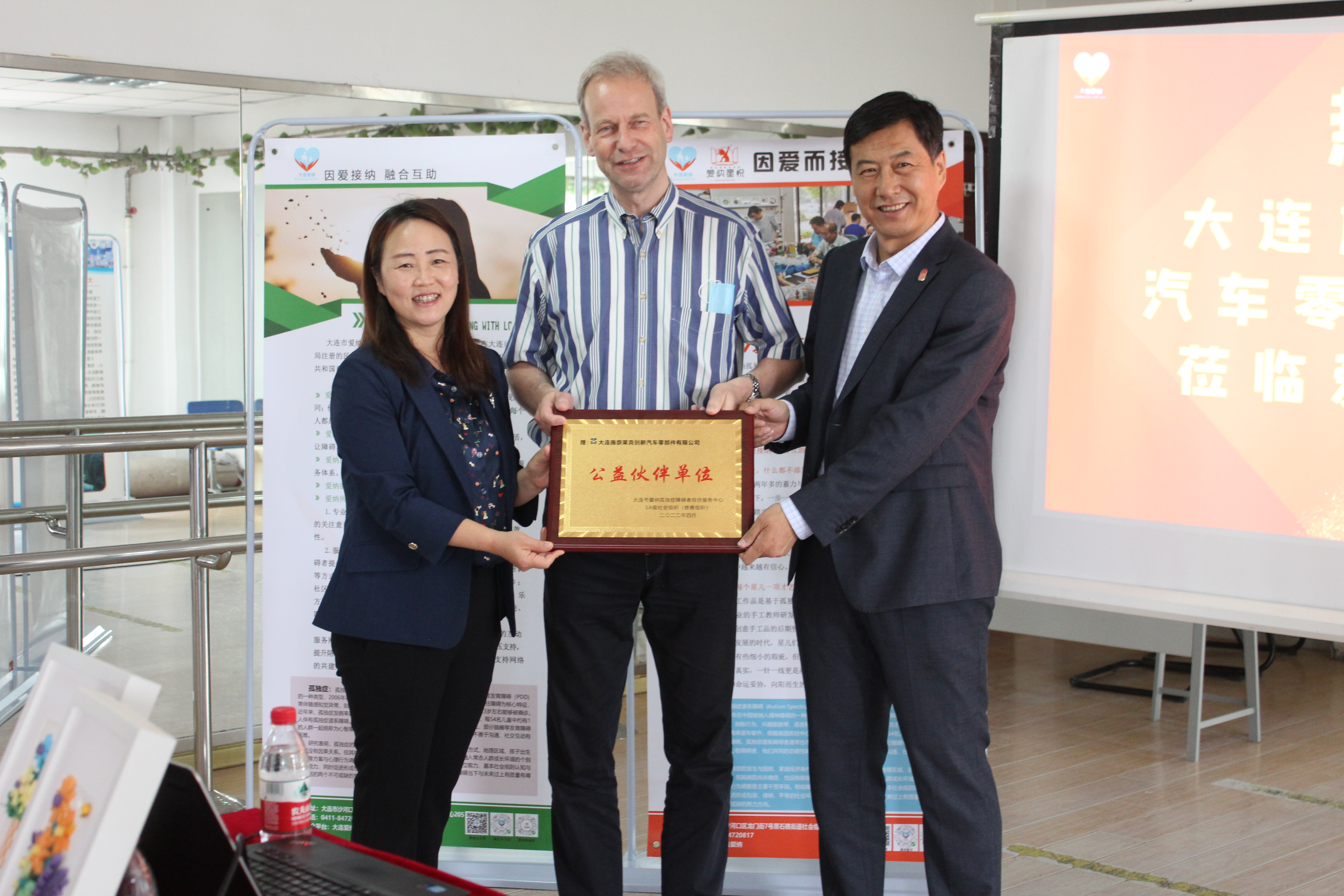 捐赠仪式上,大连爱纳理事长张鳗老师代表爱纳家庭向Ploeger先生及DKIA全体同仁表达诚挚的感谢,感谢大家对孤独症障碍者群体的关注及支持。